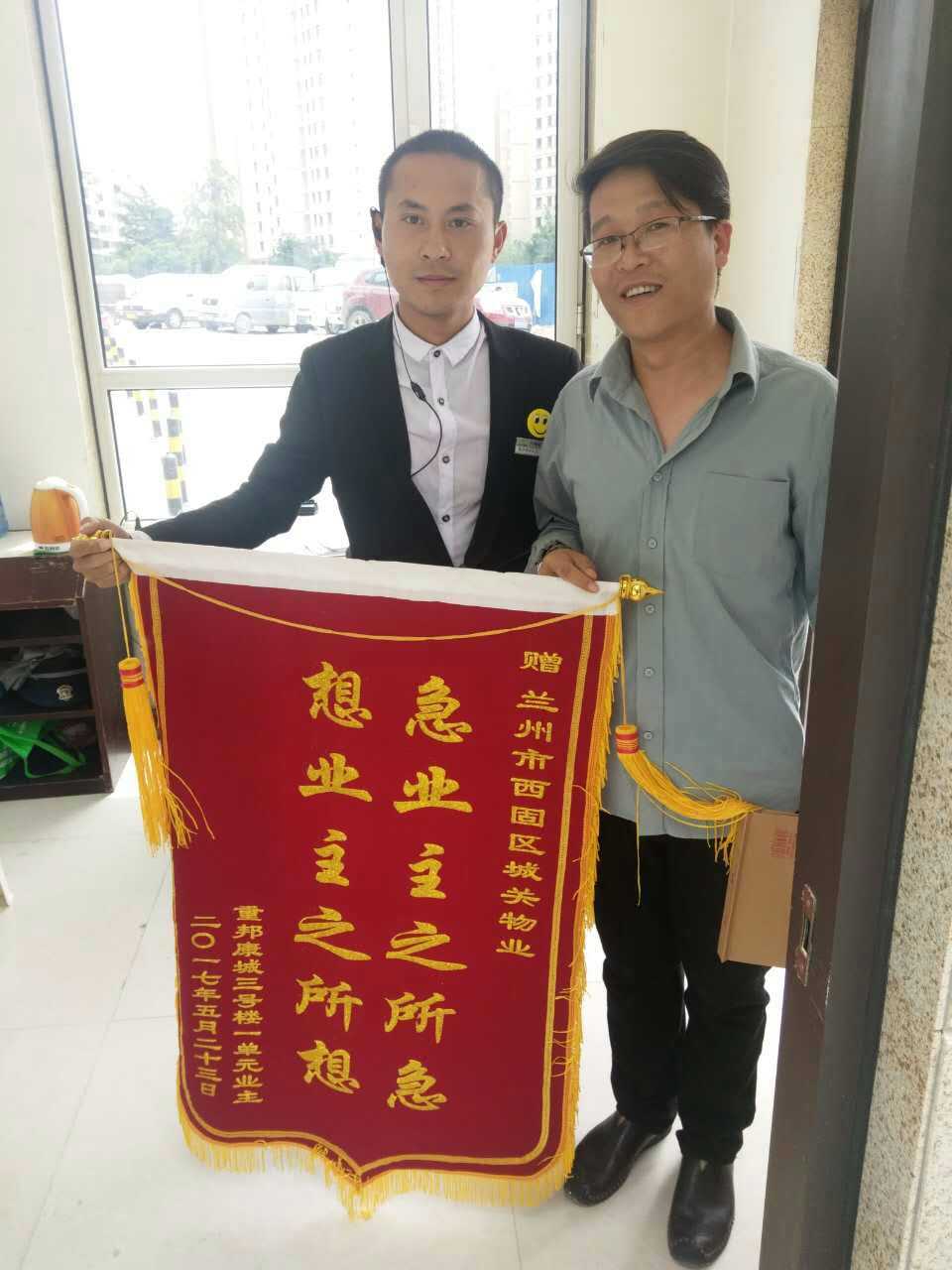 5月24日上午11點(diǎn)左右,重邦康城小區(qū)一戶業(yè)主將一副題為“急業(yè)主之所急,想業(yè)主之所想”的錦旗送到了物業(yè)辦公室,感謝物業(yè)人員在干好本質(zhì)工作的同時(shí),積極熱心的幫忙尋找自家的小狗。該業(yè)主強(qiáng)調(diào),自從入住這個(gè)小區(qū)以來,每一天都過的很舒心,城關(guān)物業(yè)工作人員專業(yè)素質(zhì)強(qiáng),服務(wù)熱情周到。在得知小狗丟了的情況下,積極主動(dòng)的安排人員幫忙尋找,并最終找到小狗。感謝城關(guān)物業(yè)提供如此優(yōu)質(zhì)、貼心、專業(yè)的服務(wù)。田曉晨經(jīng)理說道,業(yè)主的事不論大小,只要有需要,我們定會(huì)全力以赴。