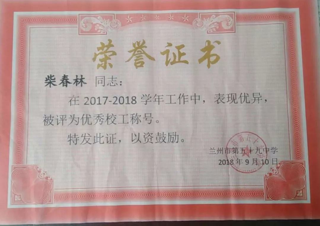 蘭州市第五十九中學(xué)召開教師節(jié)表彰大會(huì),會(huì)上城關(guān)物業(yè)員工魏萍、柴春林、趙香合等被評為“優(yōu)秀校工”。