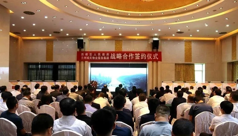 參會人員觀看城關(guān)物業(yè)公司宣傳片及全域無垃圾專項治理投資項目示范案例視頻后,慶陽市西峰區(qū)區(qū)委常委、常務(wù)副區(qū)長李廷位、蘭州城關(guān)物業(yè)服務(wù)集團(tuán)有限公司總裁楊佳林代表雙方簽訂合作協(xié)議。