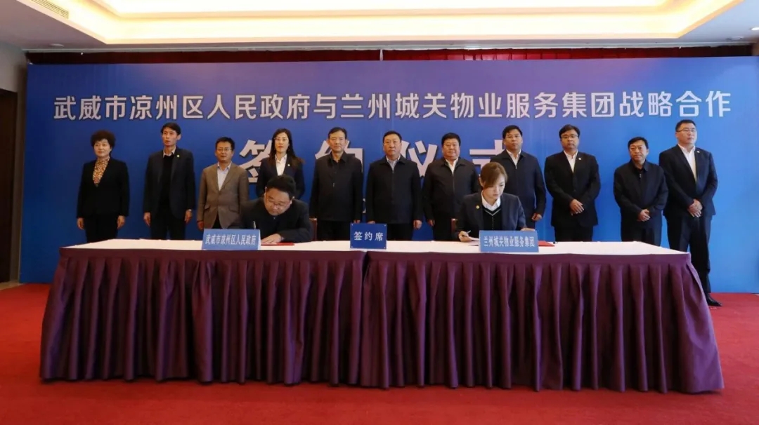 蘭州城關(guān)物業(yè)服務(wù)集團(tuán)有限公司與武威市涼州區(qū)人民政府簽訂戰(zhàn)略合作協(xié)議,武威市委常委、涼州區(qū)委書記鞠毅主持簽約儀式。涼州區(qū)委副書記、區(qū)長高加志、蘭州城關(guān)物業(yè)服務(wù)集團(tuán)有限公司黨委書記、董事長楊民召等一行領(lǐng)導(dǎo)出席簽約儀式。今后雙方將共謀發(fā)展,共創(chuàng)未來,為涼州區(qū)城市發(fā)展添磚加瓦。