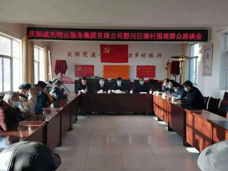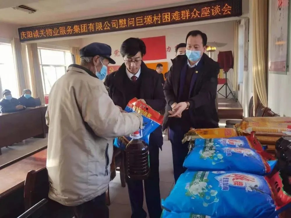 春節(jié)臨近,為了讓貧困群眾能度過一個快樂祥和的節(jié)日,感受社會帶來的溫暖,蘭州城關(guān)物業(yè)服務(wù)集團有限公司慶陽子公司在慶陽市西峰區(qū)溫泉鎮(zhèn)巨塬村舉行了春節(jié)困難慰問活動。