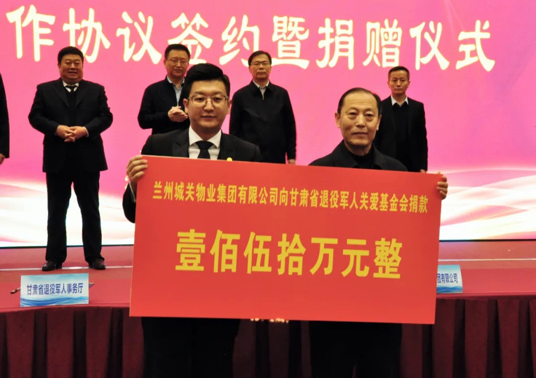 社會尊崇,愛滿人間。為深化雙擁共建,關愛退役軍人,甘肅省退役軍人事務廳與蘭州城關物業(yè)集團戰(zhàn)略合作協(xié)議簽約暨捐贈儀式在省城寧臥莊賓館舉行。